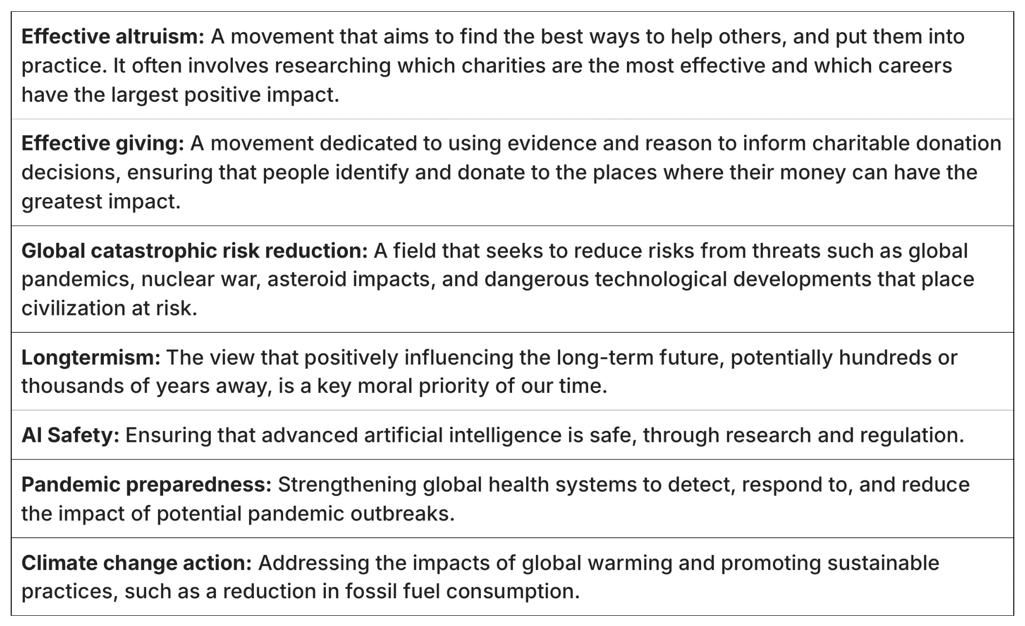 There has been much debate about whether people involved in EA and Longtermism should frame their efforts and outreach in terms of Effective altruism, Longtermism, Existential risk, Existential security, Global priorities research, or by only mentioning specific risks, such as AI safety and Pandemic prevention (examples can be found at the following links: 1,2,3,4,5,6,7,8). These discussions have taken place almost entirely in the absence of empirical data, even though they concern largely empirical questions.[1]